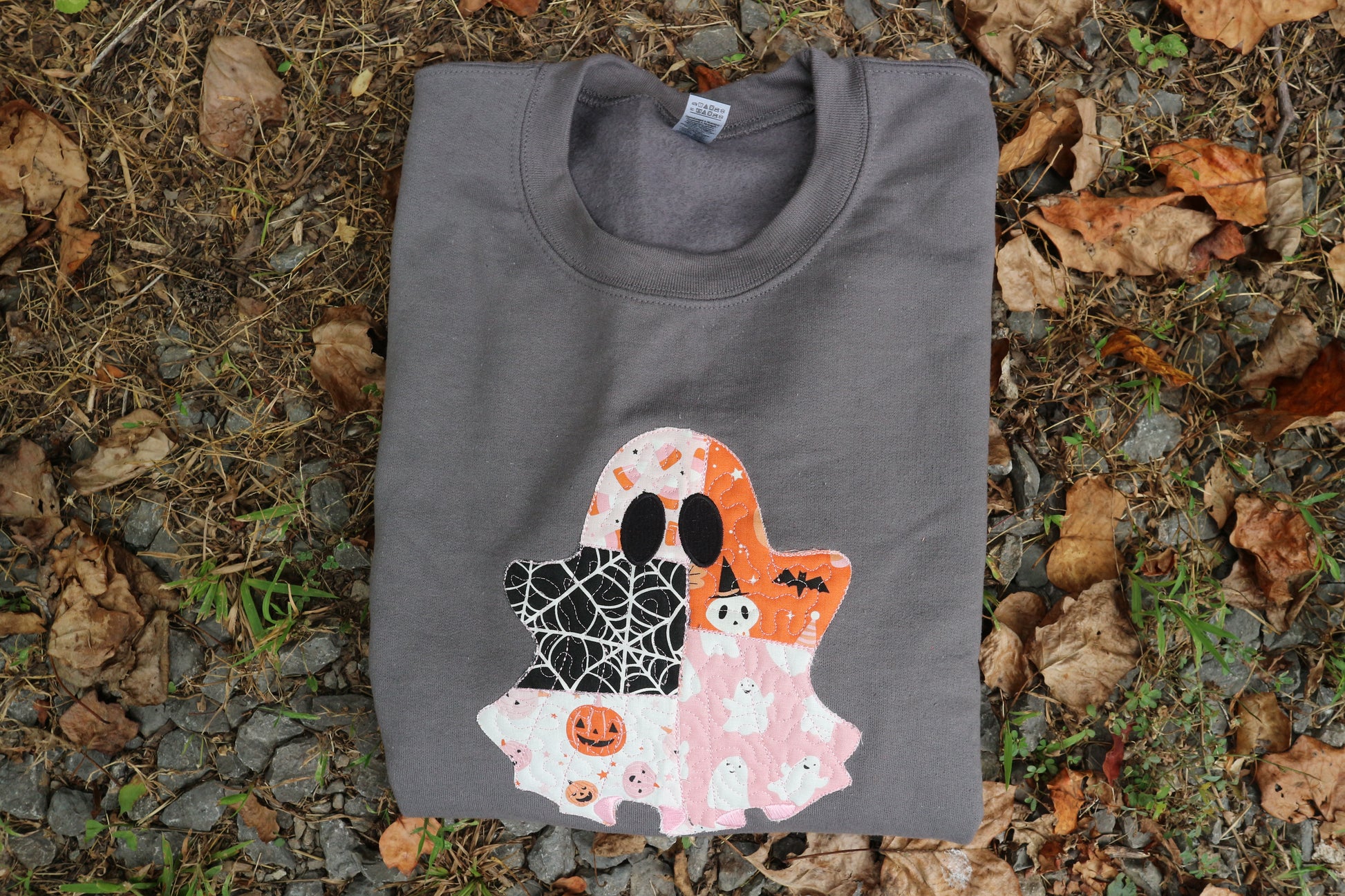 This crewneck was made for a cute spooky season! We added in a bit of your grandma's flare to give it a quilted look!